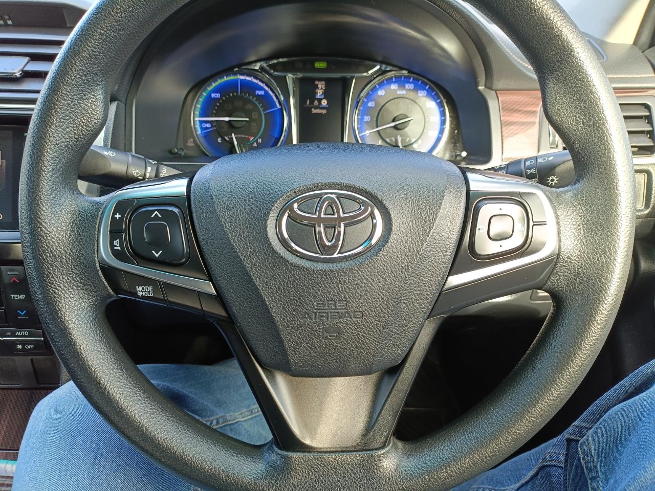 Beautiful Electric Blue G Spec Camry Hybrid with English dashboard instruments stylish, economical, and packed with features.